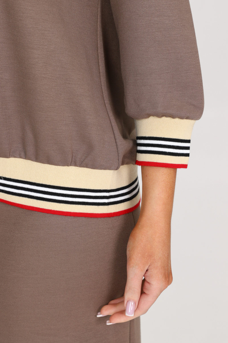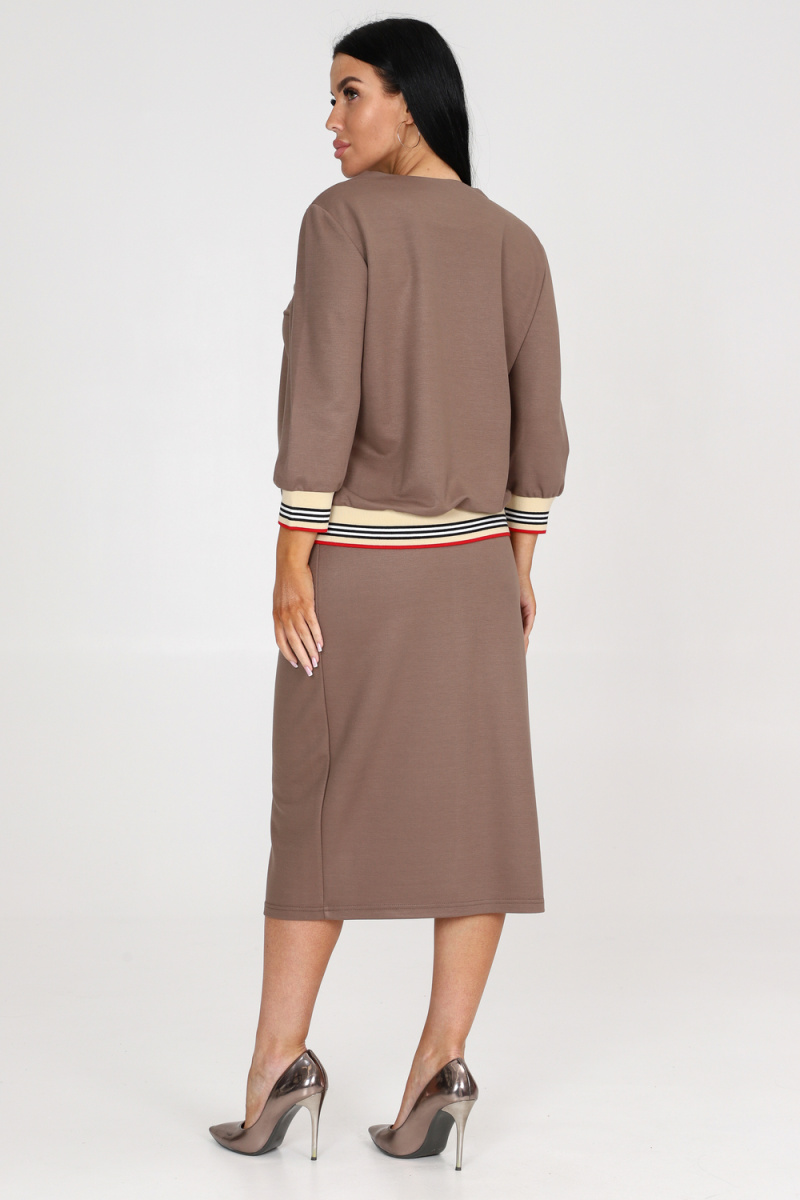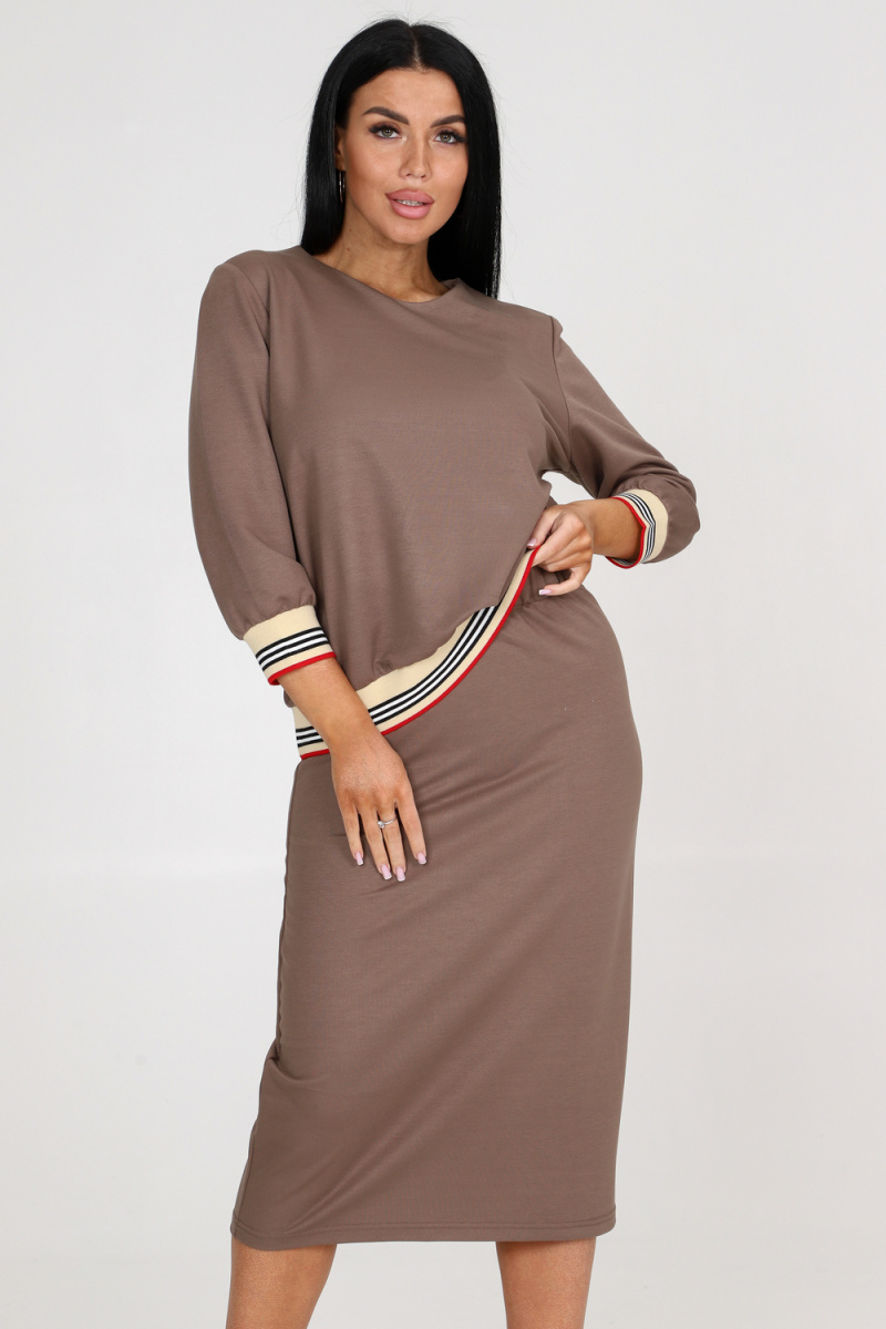 Изящный комплект, состоящий из туники и прямой юбки, изготовлен из эксклюзивной ткани академик, гарантируя не только превосходный комфорт, но и долговечность. Одна из ключевых особенностей этого костюма – изящный рукав, украшенный очаровательной манжетой из отделочной ленты, которая привносит особую изюминку и подчеркивает безупречный стиль. Низ туники также декорирован элегантной отделочной лентой, создавая гармоничное сочетание элементов и делая костюм идеальным выбором для важных мероприятий или деловых встреч. Прямая юбка, являющаяся неотъемлемой частью этого костюма, привносит современный шарм и идеально сидит на фигуре, подчеркивая ее достоинства и придавая образу изысканности. Размерный ряд от 48 до 58 позволяет каждой женщине найти идеальную посадку, соответствующую ее фигуре.